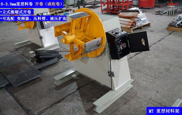 7、重型材料架承載量大,上料簡便,運行平穩(wěn),由感應(yīng)架自動控制材料架的開停,無需人工看管,自動化程度高,同時可根據(jù)客戶需求加裝壓料臂、油壓擴張,大的提高了沖壓生產(chǎn)線效率和沖壓制品的品質(zhì),是沖壓生產(chǎn)線理想的放料、開卷設(shè)備。