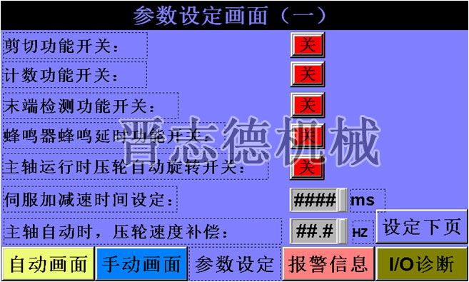 7、“主軸自動(dòng)時(shí),壓輪速度補(bǔ)償”,自動(dòng)時(shí),當(dāng)壓輪速度慢于主軸速度,則補(bǔ)償壓輪速度,該速度需要調(diào)試適當(dāng)。