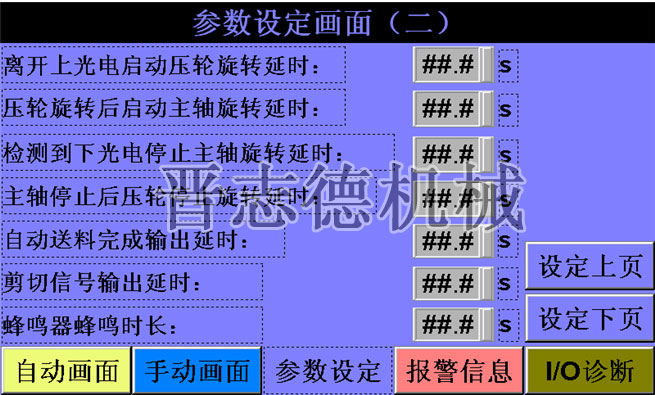 4、“主軸停止后停止壓輪旋轉(zhuǎn)延時(shí)”,設(shè)定先停止主軸旋轉(zhuǎn)后停止壓輪旋轉(zhuǎn)的間隔時(shí)間。