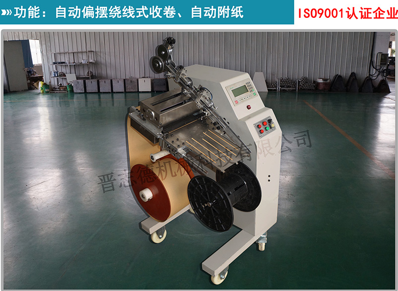 1、本機屬高速沖壓端子自動收料機,適合連續(xù)端子或小型料帶自動收卷,可進行自動偏擺繞線式收卷。
