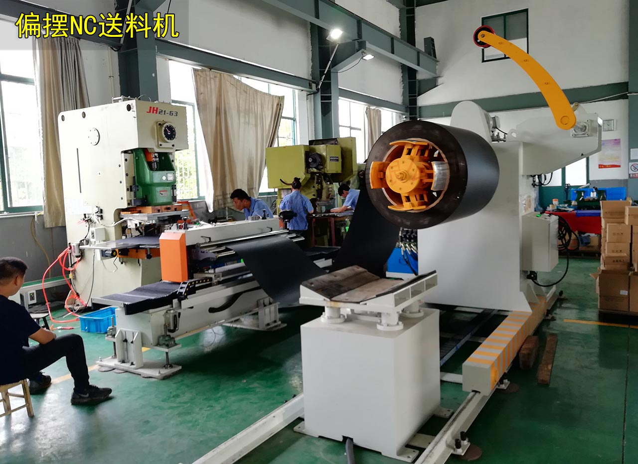 偏擺NC送料機(jī)屬專用型送料設(shè)備,是晉志德機(jī)械專為圓片下料客戶量身打造的送料設(shè)備,其相比標(biāo)準(zhǔn)型NC送料機(jī),增加了由伺服馬達(dá)控制的左右移動工作機(jī)架,通過偏擺移位來調(diào)整沖壓圓片的位置,可根據(jù)圓片下料直徑,進(jìn)行多次移位,確保圓圓互切式下料,提高材料的利用率,具有高產(chǎn)出、高效率、高精度、能耗低、全自動化控制等優(yōu)勢,若材料平整度不夠,還可以配晉志德機(jī)械生產(chǎn)的整平機(jī),整平工作輥可將材料弧度加以矯正,讓材料可以順利通過模具,并保證圓片平面度。